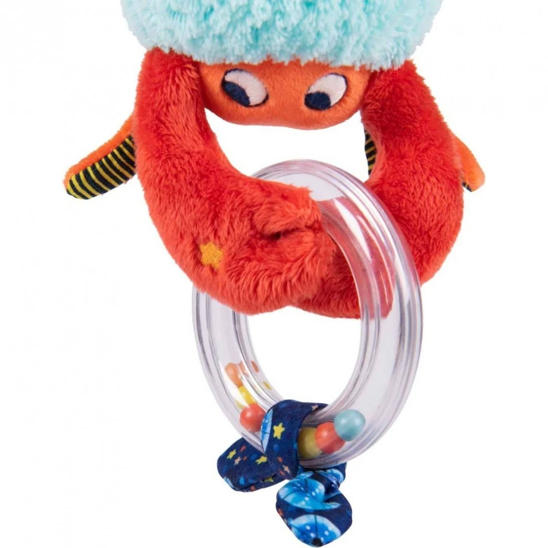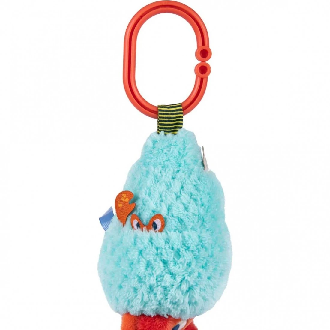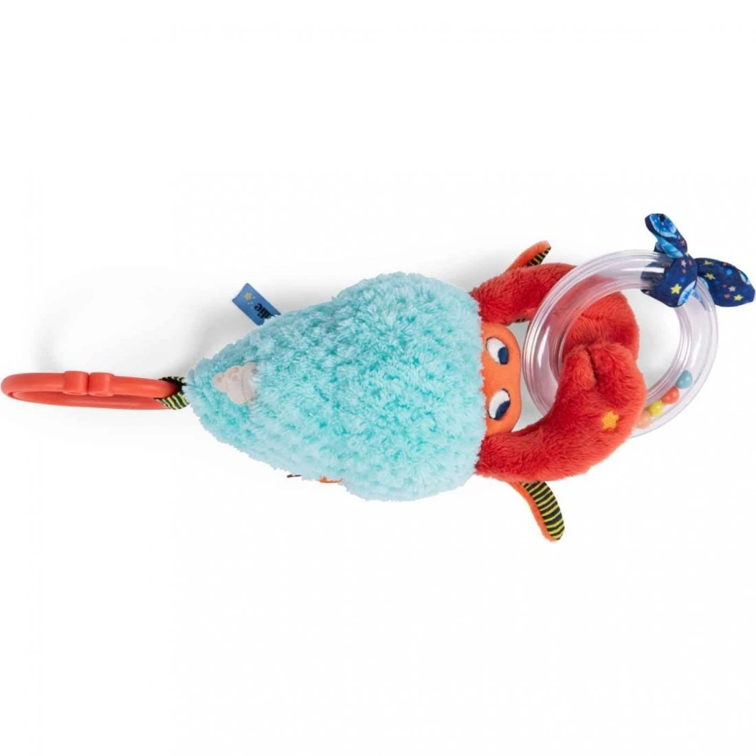 l’ermite de la série . Voici un drôle de Bernard l’Hermite aux motifs colorés qui propose plein d’activités : , étiquettes à attraper, clochette qui fait glong… Il s’accroche partout et peut être complété par d’autres petites activités nomades de la collection.