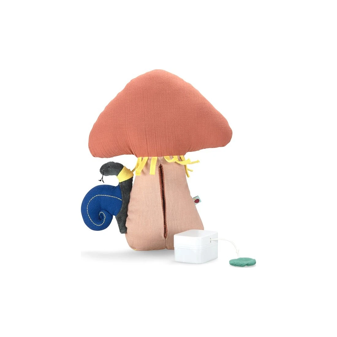 Le coussin boite à musique de la collection de Moulin Roty est une en forme de champignon. En lange de coton bio, le coussin associe deux couleurs tendances qui vont s’harmoniser pour compléter la Les détails du champignon sont joliment brodés et . Un mignon escargot rampe le long du champignon.