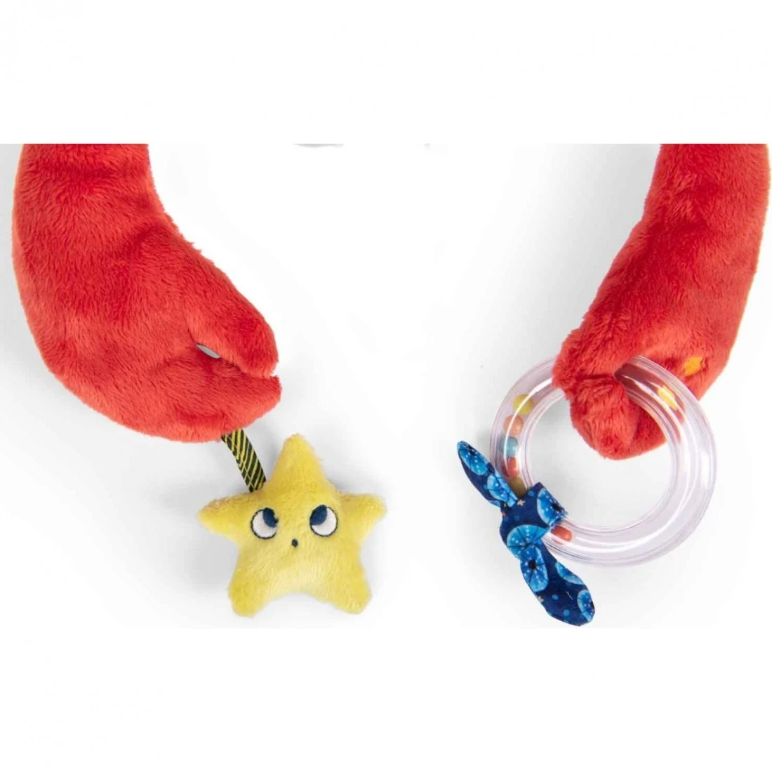 Ce grand crabe d’activités a plus d’un tour dans ses pinces. Avec ses trois tissus très doux au toucher, il petits dans l’exploration marine grâce à plusieurs activités dont certaines sont cachées : prisme, dilling, pouët, grelots…