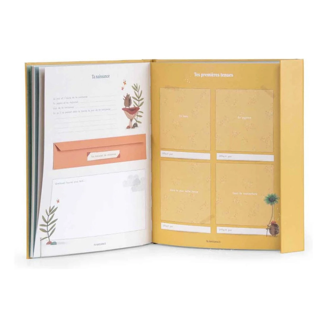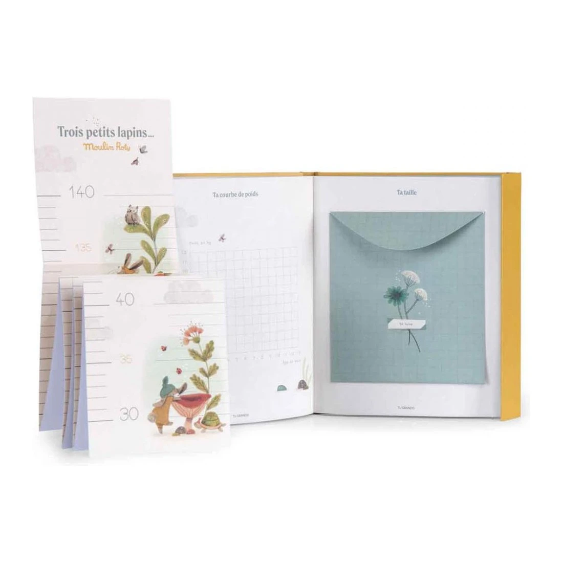 Des mots, des images, des photos … dans ce livre de naissance seront inscrits tous les précieux moments des premières années de la vie de bébé. Dans l’univers des lapins malicieux de Moulin Roty, les parents pourront raconter et conserver les souvenirs qui comptent pour eux.