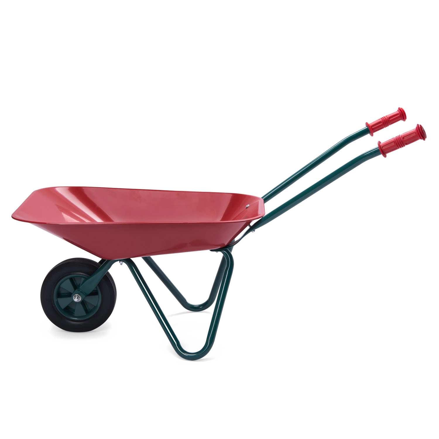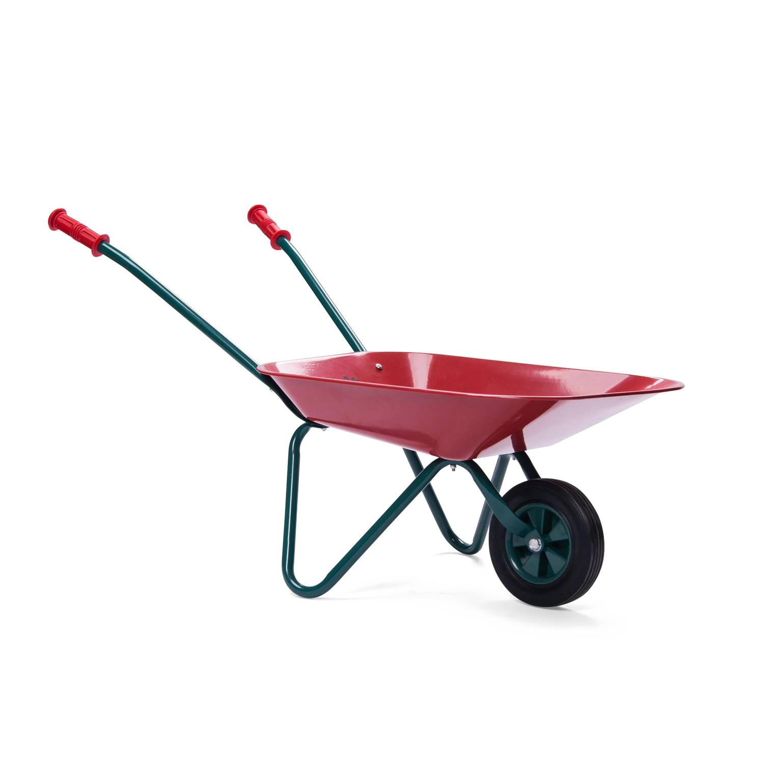 Brouette colorĂ©e, lĂ©gère et solide, avec des poignĂ©es basses Ă hauteur de nos petits jardiniers en herbe, pour qu’ils puissent charger, dĂ©charger et transporter facilement tous leurs petits trĂ©sors : fleurs, lĂ©gumes, feuilles, jouets…