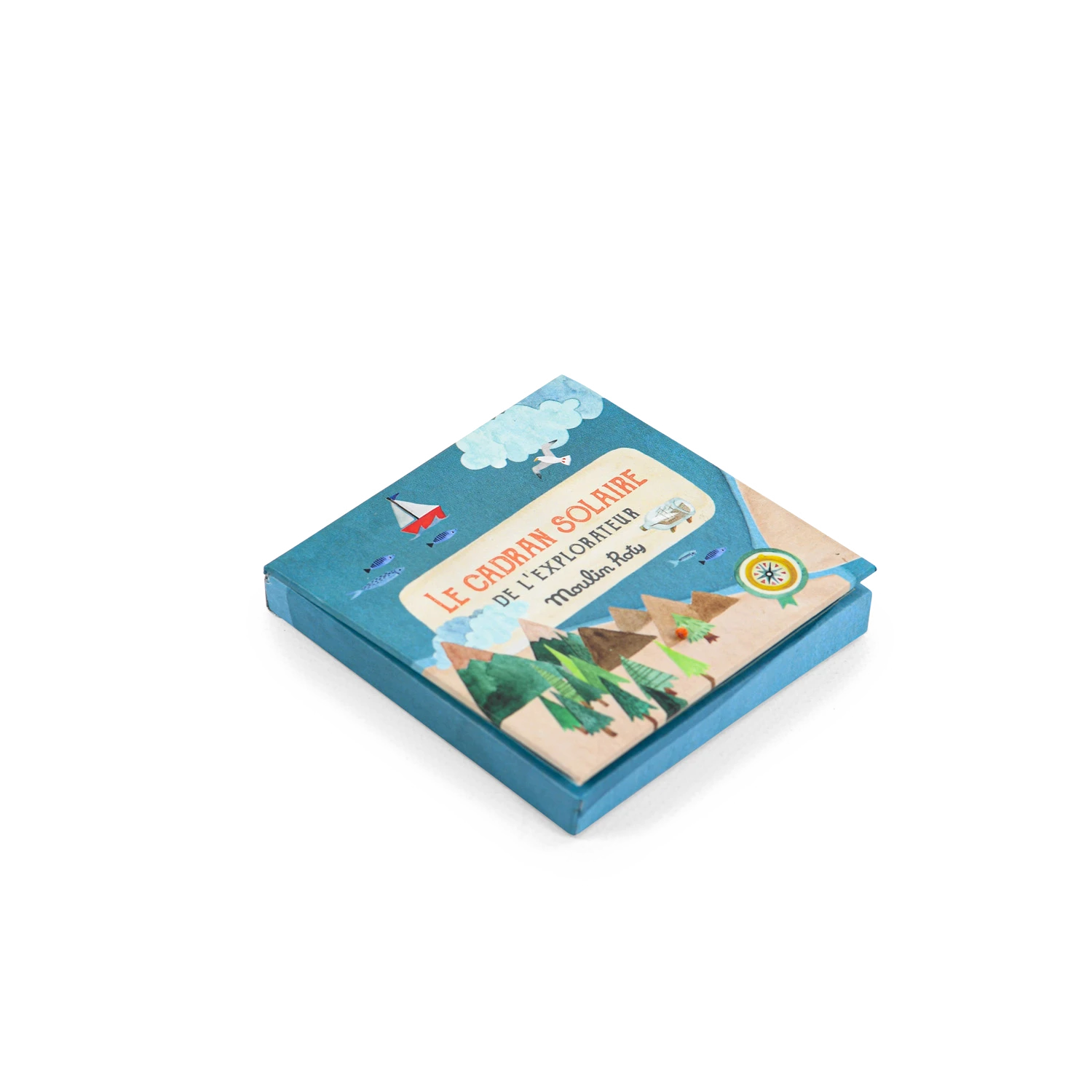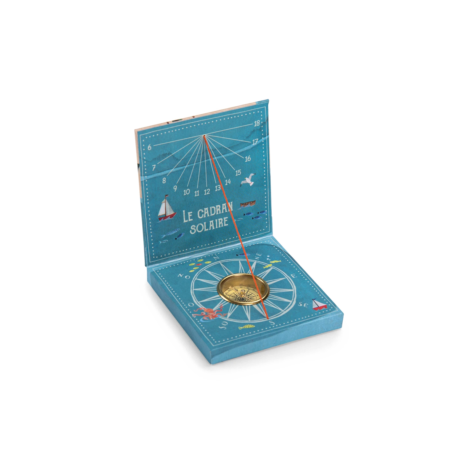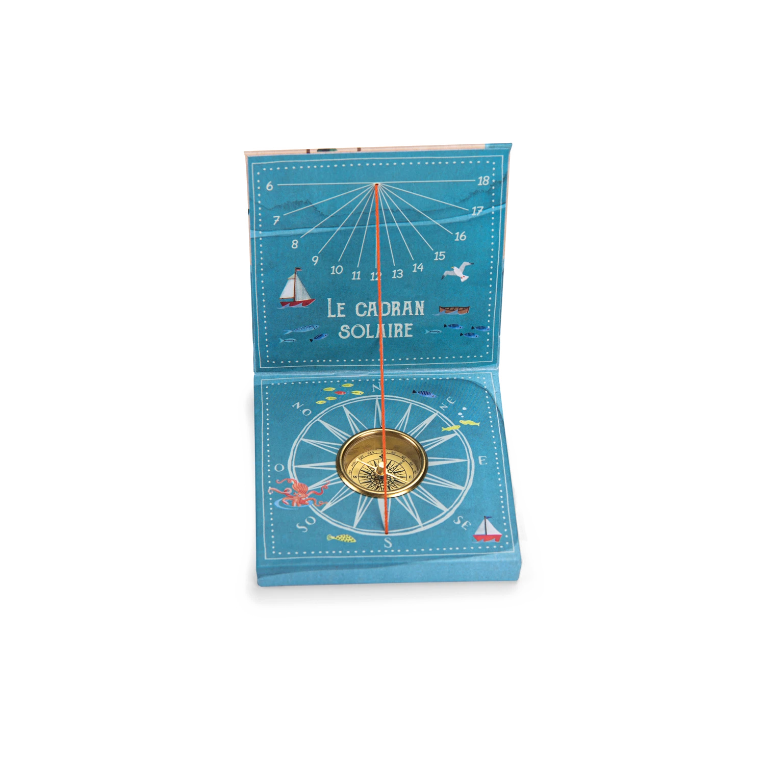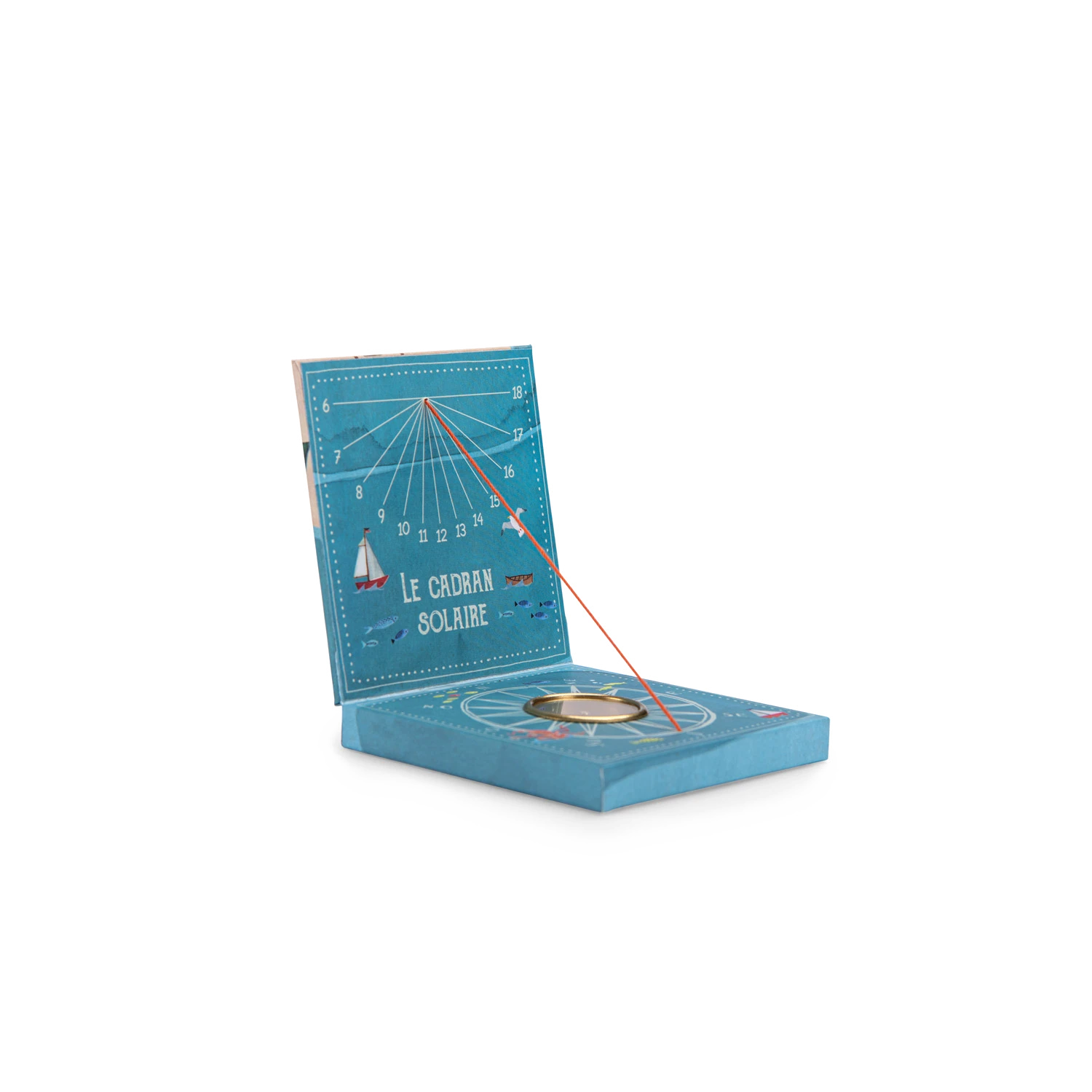 Cadran solaire pour sensibiliser les petits aventuriers au temps et Ă l’orientation. Il suffit de se mettre au soleil avec l’aiguille positionnĂ©e vers le nord, pour que l’ombre du fil indique l’heure solaire.