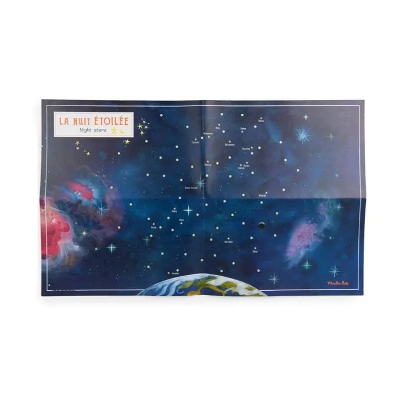 Carte du ciel avec décalcomanies, dès 6 ans.