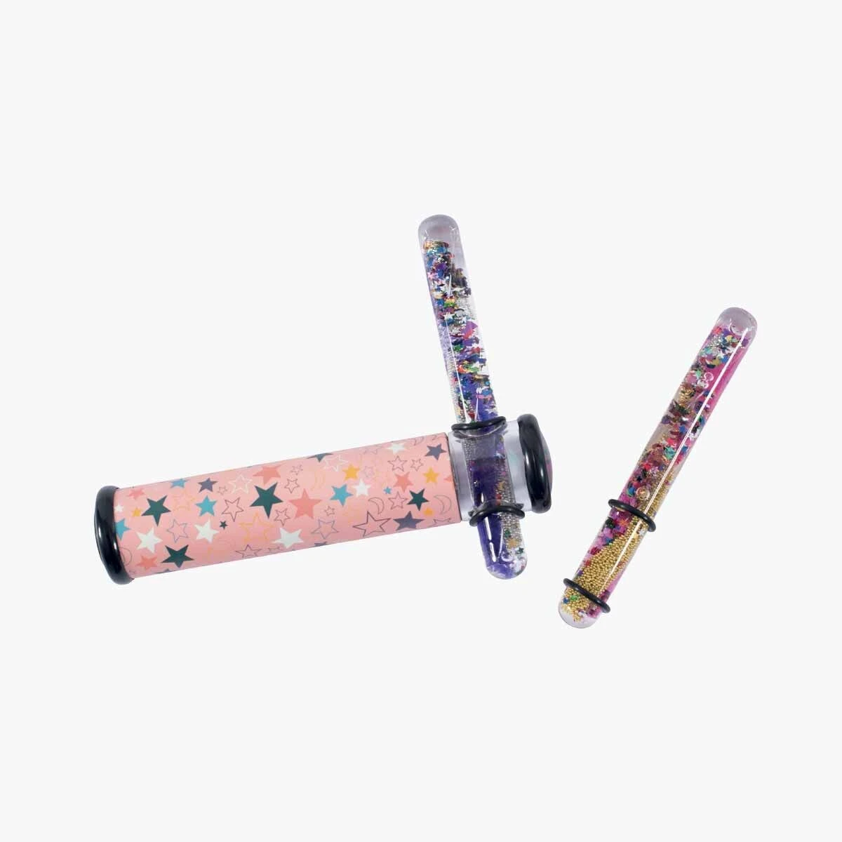 Un cadeau merveilleux ! Coffret illustré comprenant un kaléidoscope étoilé avec 2 tubes coulissants contenant du gel et des paillettes qui, associés aux petits miroirs du kaléidoscope, démultiplient à l’infini les combinaisons de formes et de couleurs.
