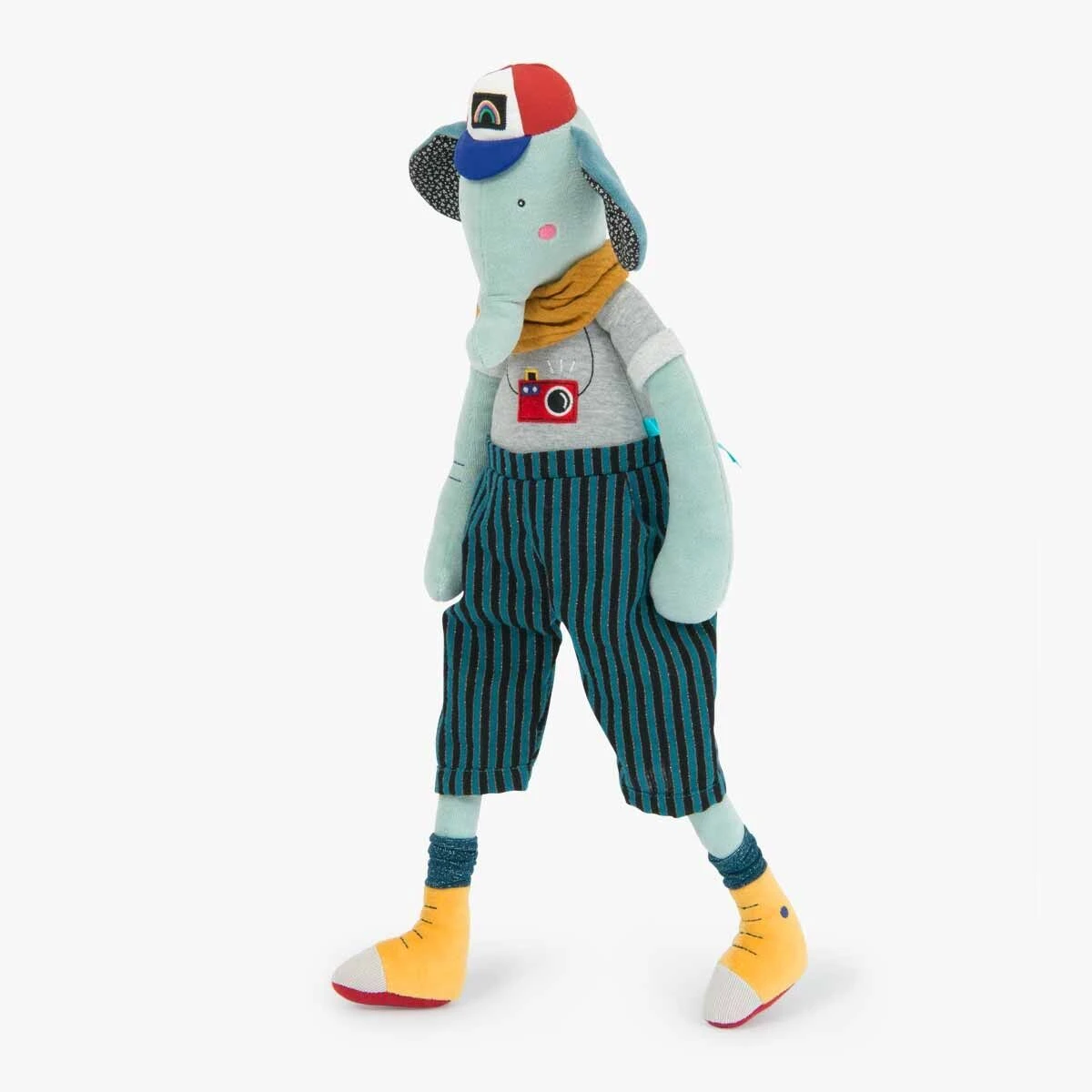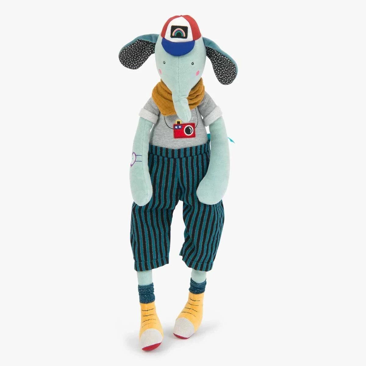 Pablo l’éléphant très attachant, voyage à travers l’Amérique toujours muni de sa casquette et son appareil photo ! Avec son pantalon rayé, foulard noué et baskets aux pieds, ce compagnon looké fera le bonheur des petits et grands, pour jouer ou décorer !