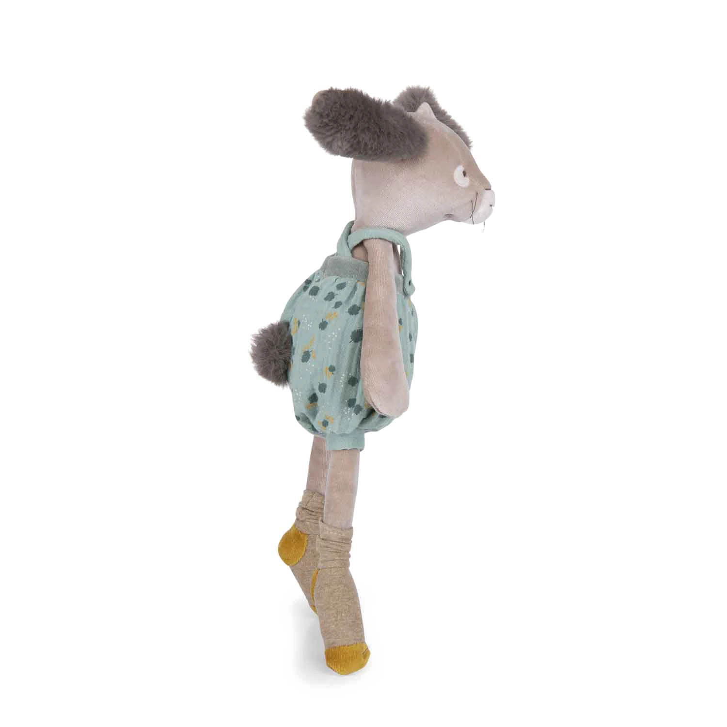 Avec sa frimousse à moustaches et ses grandes oreilles toutes douces, cet adorable lapin à la salopette sauge ne demande qu’à faire des câlins ! Compagnon de jeu la journée et doudou protecteur la nuit, il accompagnera bébé.