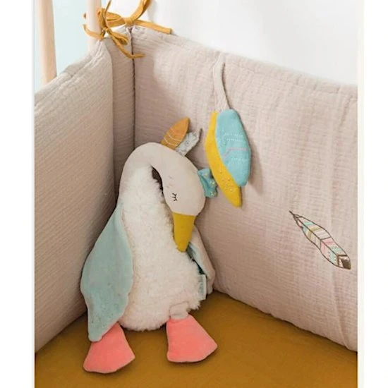 Voici Olga l’oie musicale qui accompagnera bébé en douceur au moment du coucher. Une jolie peluche qui reprend les tons pastels de la collection Le voyage d’Olga.