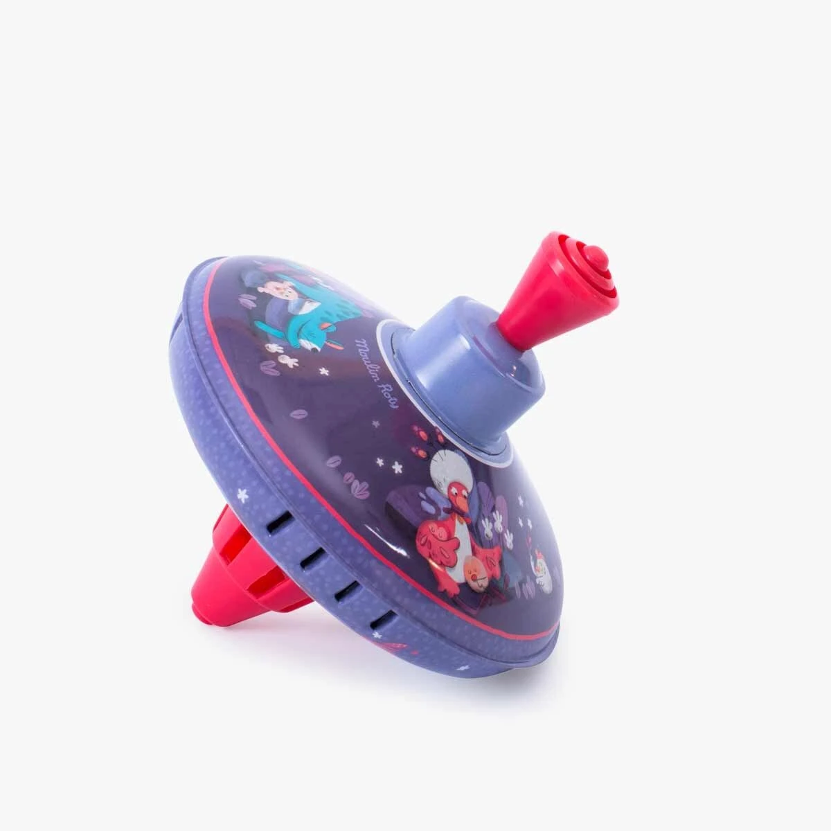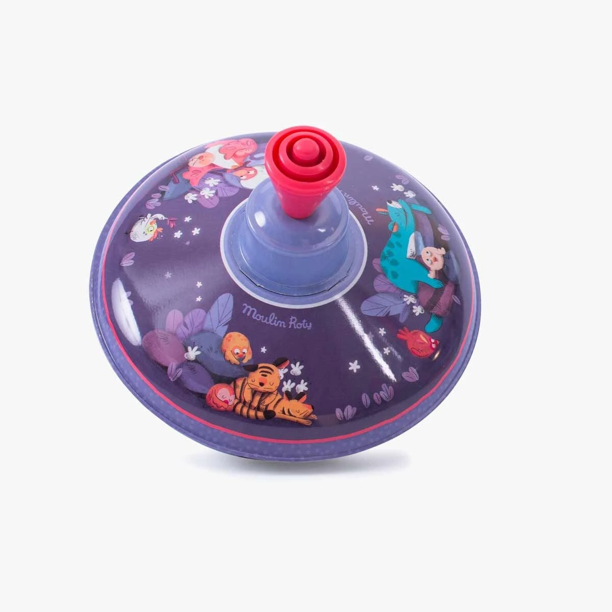 Toupie indémodable en métal, décorée de 3 jolies scènes dans la jungle, à la tombée de la nuit… Il suffit de tirer le cône rouge plusieurs fois pour que la toupie se lance et prenne de la vitesse. Idéal pour apprendre la dextérité et la patience !