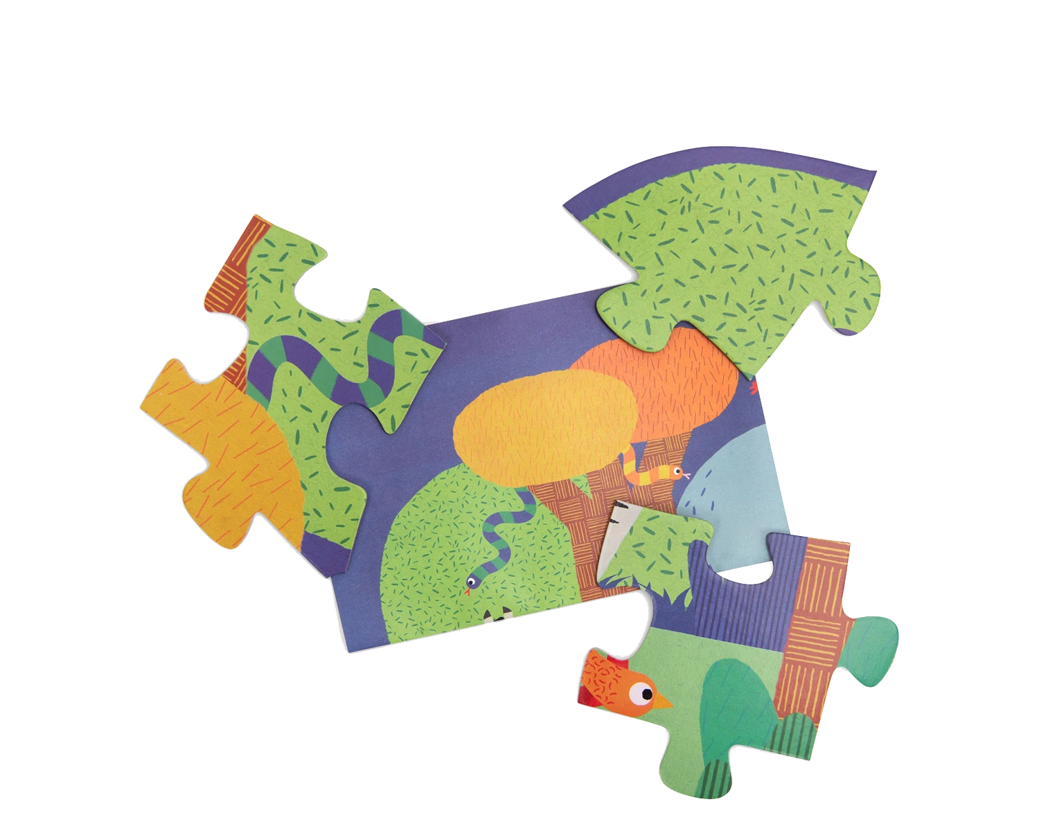 Puzzle géant ‘ L’oasis des animaux ‘ avec 36 grandes pièces en carton épais, faciles à prendre en main, issu de la collection les Toupitis. Contient un poster modèle pour aider l’enfant à reconstituer le puzzle. 4 ans et +