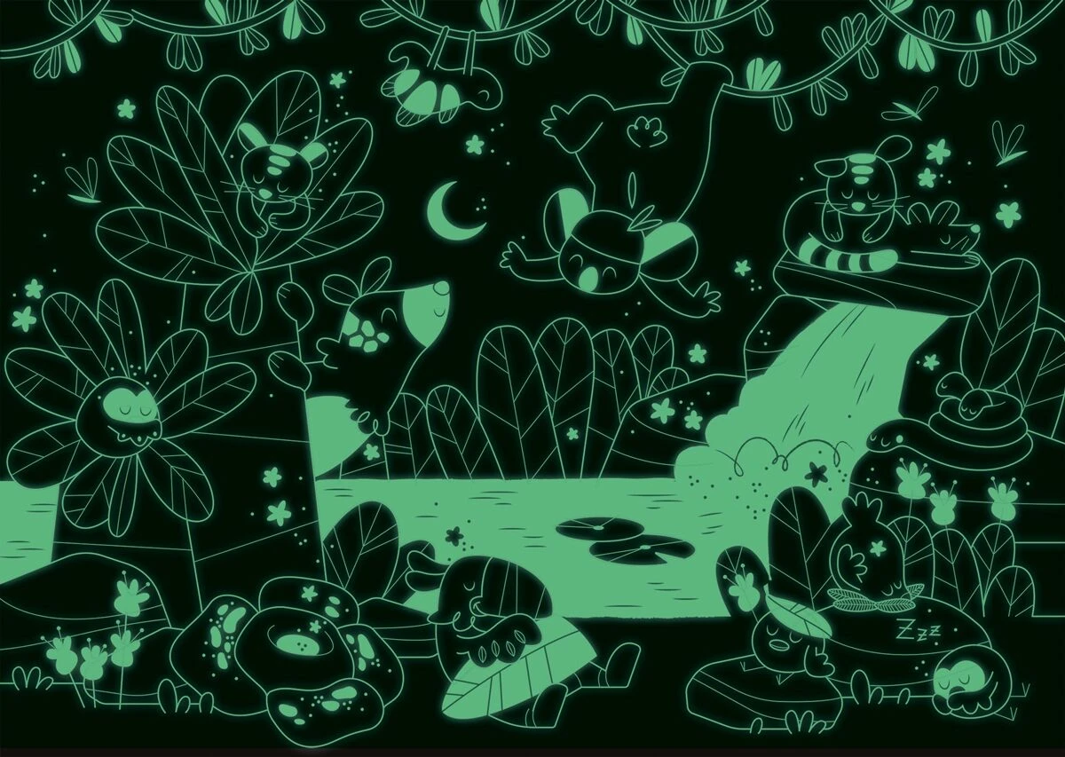 Rendez-vous à la cascade avec ce puzzle phosphorescent de 24 pièces issu de la collection Dans la Jungle ! Après l’avoir reconstitué, éteins la lumière afin que la magie opère. Contient 1 poster modèle pour aider l’enfant à le recomposer fac