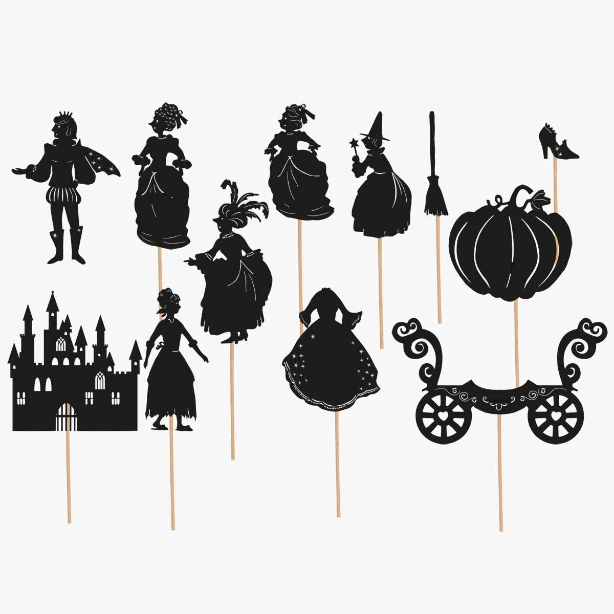 Théâtre en carton à poser, avec deux calques (1 vierge et 1 illustré), et 12 ombres à monter sur le conte classique de Cendrillon. Grâce à une source lumineuse au dos, les ombres se projettent dans ce joli décor. Place au spectacle !
