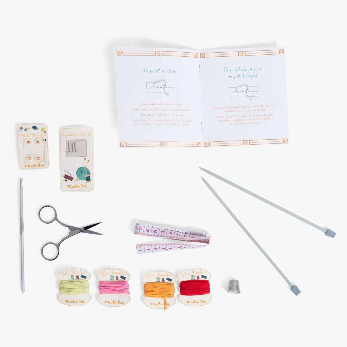 Tout l’univers de l’atelier couture contenu dans une valise !Pour faire comme les grands : des aiguilles Ă tricoter et des pelotes, du fil et des aiguilles, un mètre ruban, un dĂ© Ă coudre, des petits boutons, une paire de ciseaux et un manuel explicatif.