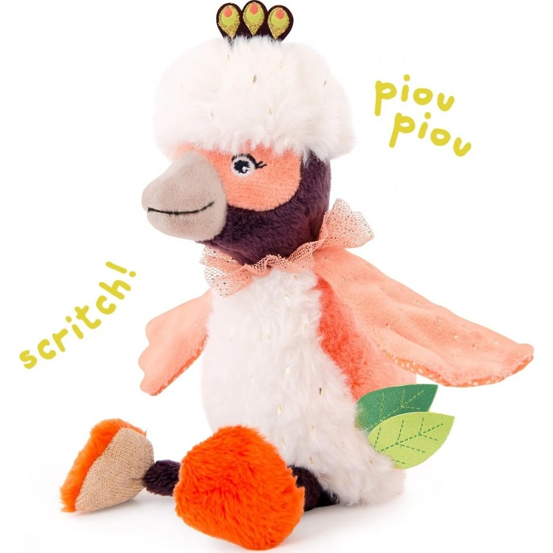 Le nid d’activités à suspendre est plein de surprises pour bébé. Les ailes de Paloma sont en papier crissant, et la peluche fait un beau bruit d’oiseau lorsque l’on appuie sur son ventre. Le petit poussin se cache avec Paloma dans son nid haut en couleurs, sur lequel est posé un papillon brillant. L’attache en velcro permet de suspendre le jouet à la poussette, au parc ou au siège auto. Une belle idée de ou un premier anniversaire.