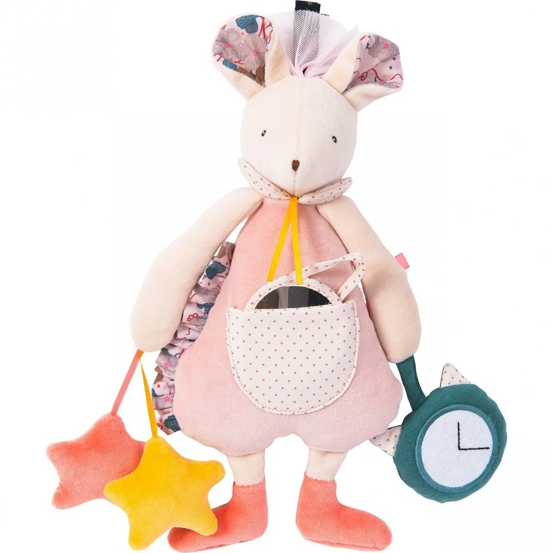La jolie d’activité de la collection « » de , est un beau, pour les bébés . Accrochée à la poussette, au parc ou au siège auto, la petite souris va éveiller bébé avec plusieurs jouets et sa jolie silhouette de souris toute douce.