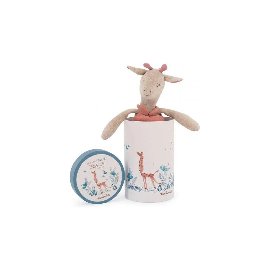 Ce doudou sera livré dans une belle boite cadeau cylindrique illustrée à l’aquarelle sur le thème de la savane.