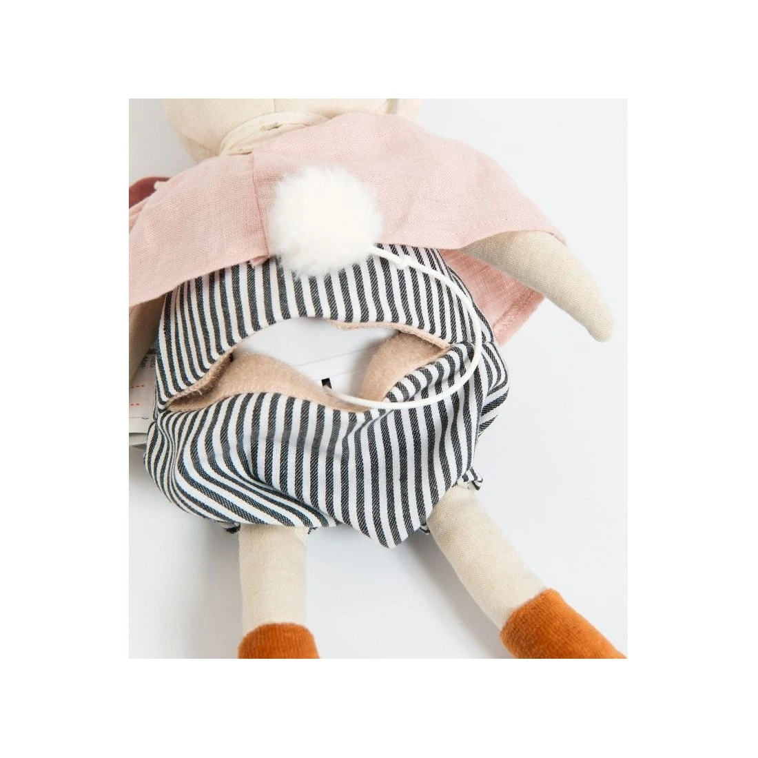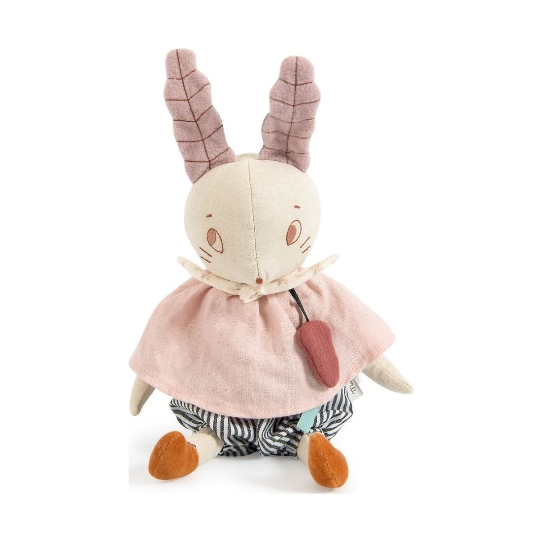 La de la collection « » est un adorable , qui apaisera et endormira bébé au son d’une jolie musique. Le lapin en tissu chambray est vêtu d’un panty rayé et d’une blouse en lin rose tendre. Les grandes oreilles de la peluche, que bébé va adorer, sont en polaire toute douce.