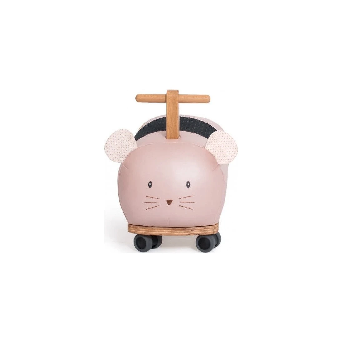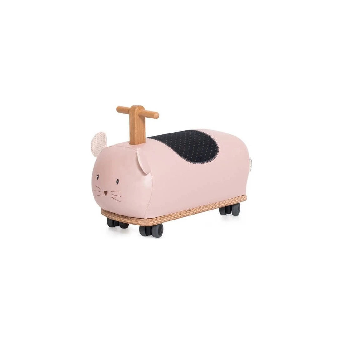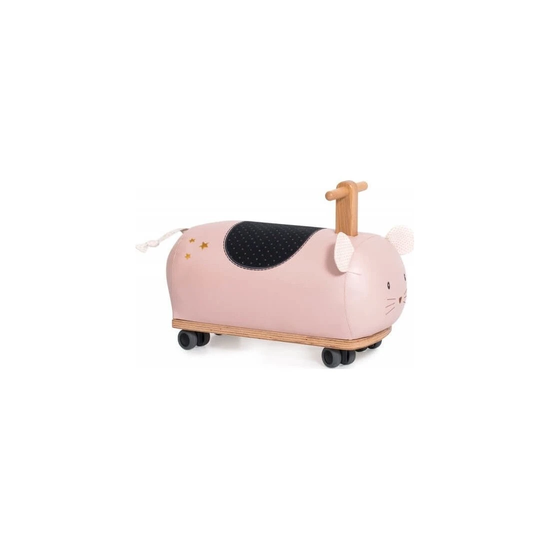 Cette très belle souris tout en rondeur, en bois massif et simili cuir est conçue pour les enfants jusqu’à 25kg.