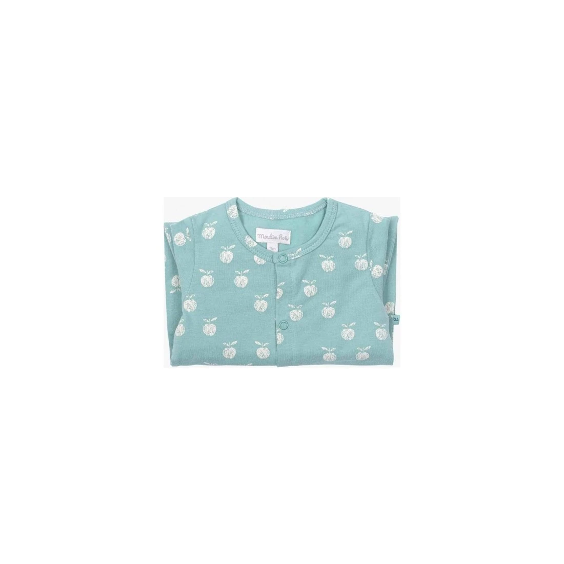 Le pyjama jersey Moulin Roty Pomme des bois est composé principalement de coton labellisé Oeko-Tex®, pour respecter la peau délicate de votre tout petit. Il est recouvert de petites pommes blanches sur un tendre fond vert, qui accompagnent avec douceur votre bébé au pays des rêves.