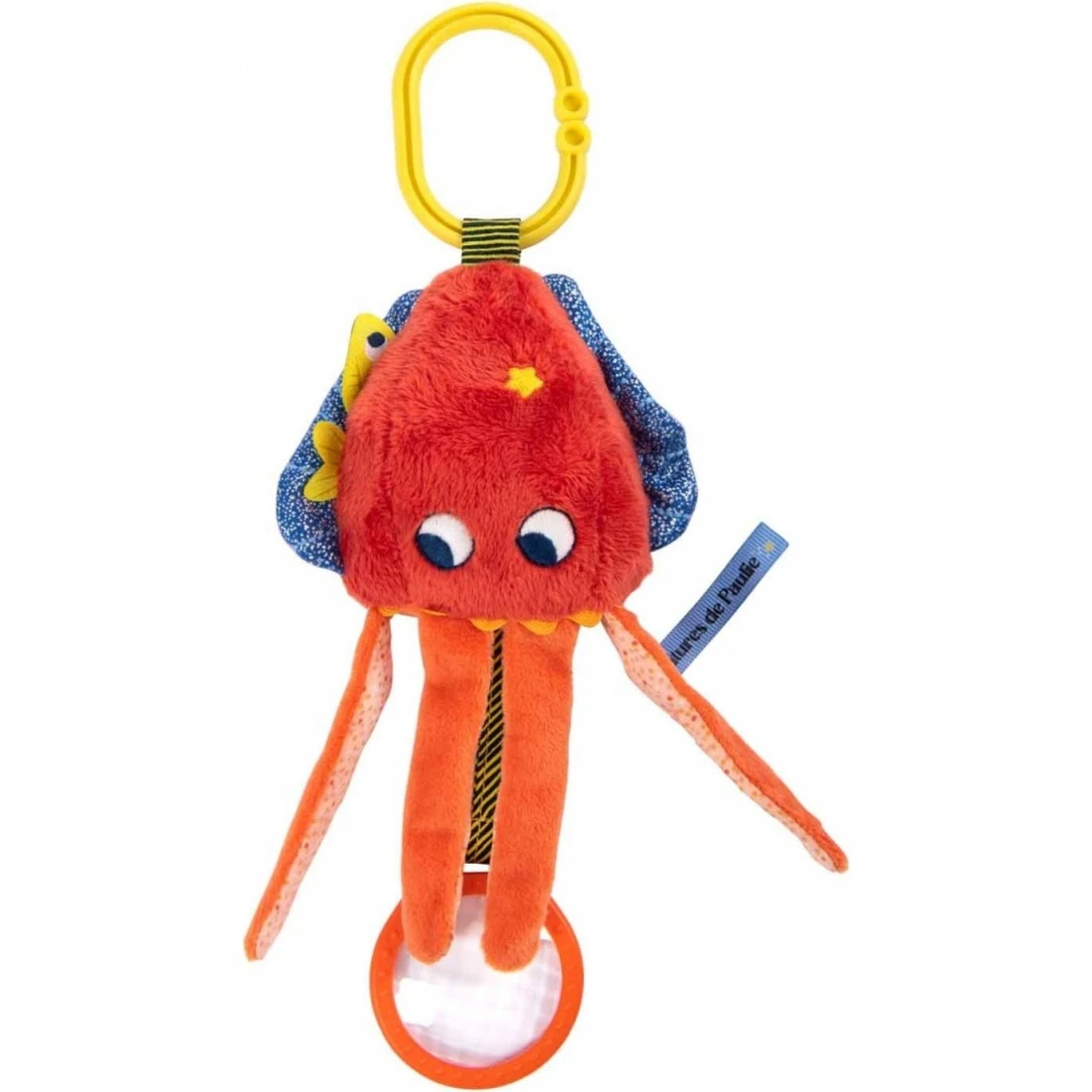 Au fond de la mer se trouve un poisson extraordinaire aux couleurs et textures étonnantes, rempli d’activités : grelot, papier crissant, étiquettes à explorer… De belles surprises pour bébé à découvrir du bout de ses petits doigts.
