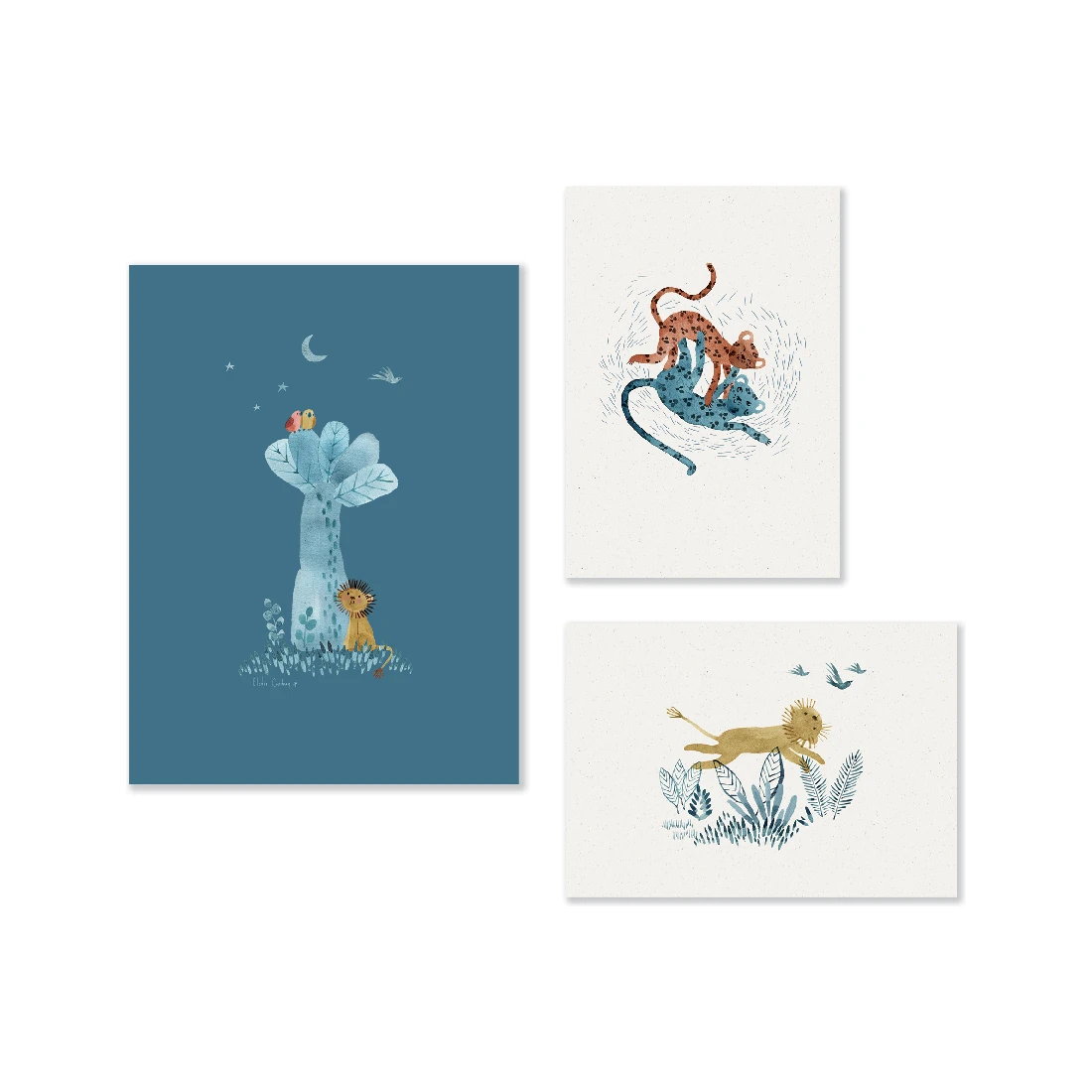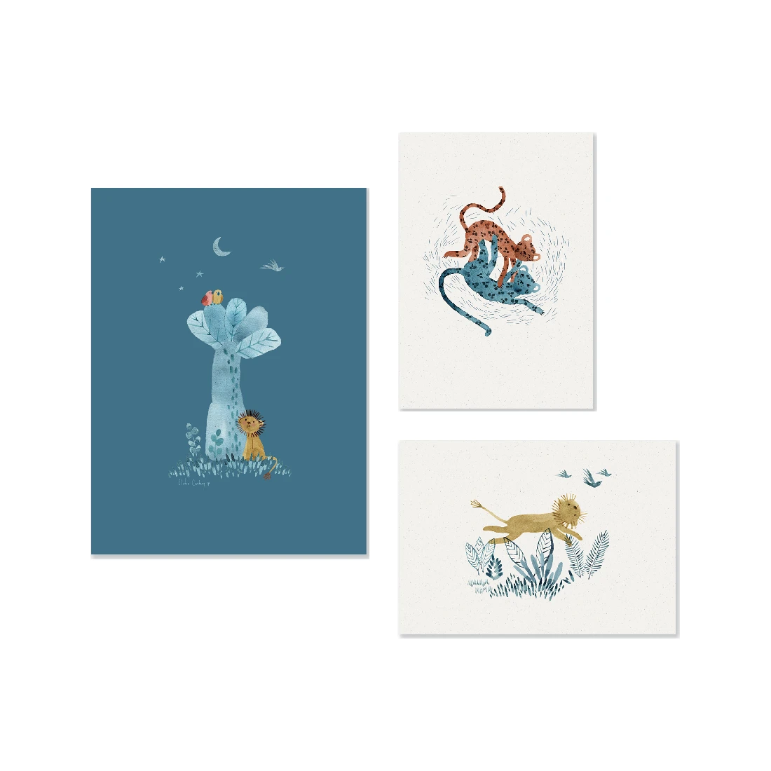Ce set de trois affiches Sous mon Baobab est , imprimé sur du papier certifié Fsc et avec l’aide d’encres végétales.