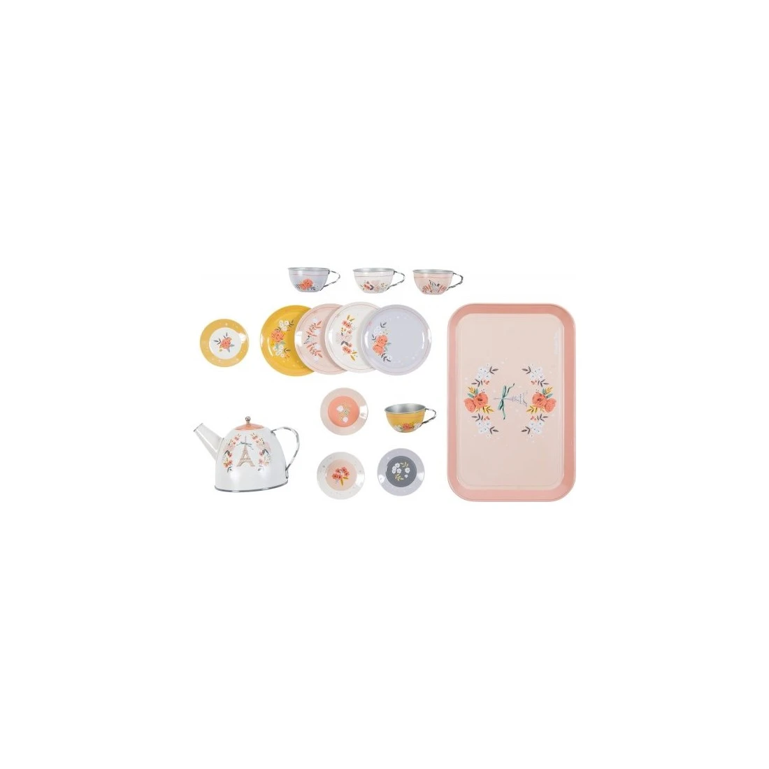 La dinette « » de à thé délicat, rangé dans une belle valise au coloris rose poudrée, avec des illustrations délicieusement rétro, au style très « parisien ». Cette dinette très complète pour les enfants permet aux filles et aux garçons de servir le thé aux doudous et peluches, et de lorsque les copains et les copines sont invités.