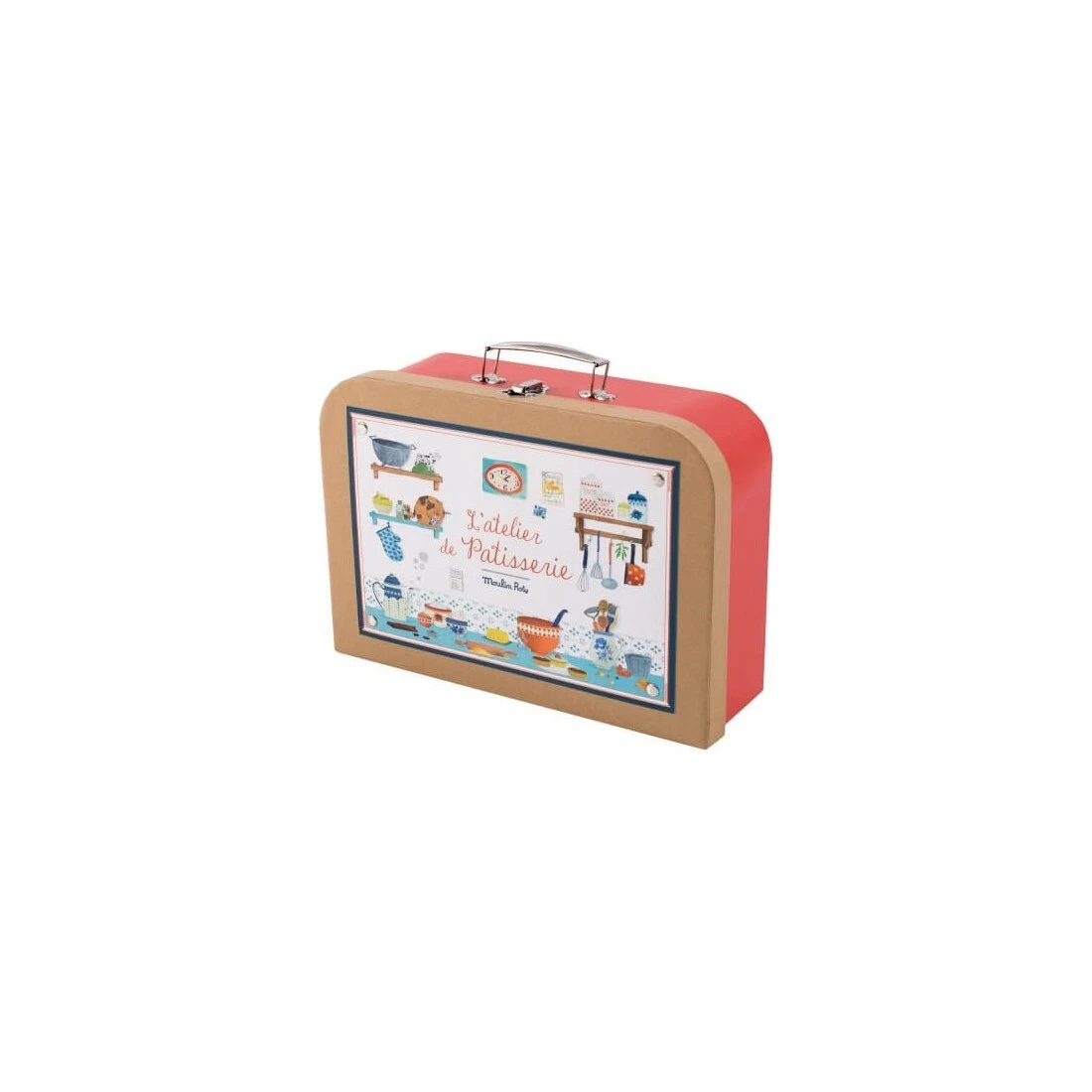 La valise « L’atelier de pâtisserie » est un à partir de 6 ans qui aiment de la pâtisserie. Pour faire de vrais gâteaux et de vrais patisserie comme papa ou maman, la malette contient de vrais ustensiles de cuisine en bois ou en métal.